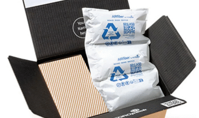 With AIRfiber, Storopack offers another innovative solution that perfectly complements its air cushion portfolio. The innovative air pillows are mostly made of paper in combination with a water-soluble inner coating. This unique combination of materials ensures that this packaging can be recycled with paper.